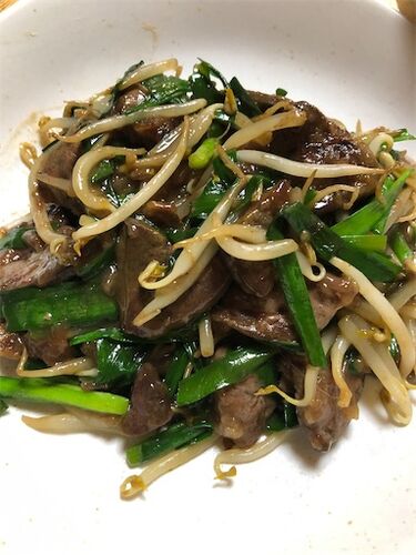 年明けから、鹿が3頭かかっています。 ローストもカツも好きですが、タン、ハツ、レバーも大好きです。 猟師の夫がいるからこその美味しい素材。 余すところなくいただいています。 本日は美しい鹿レバーを使ってレバニラです。 (レバニラかニラレバか、、…